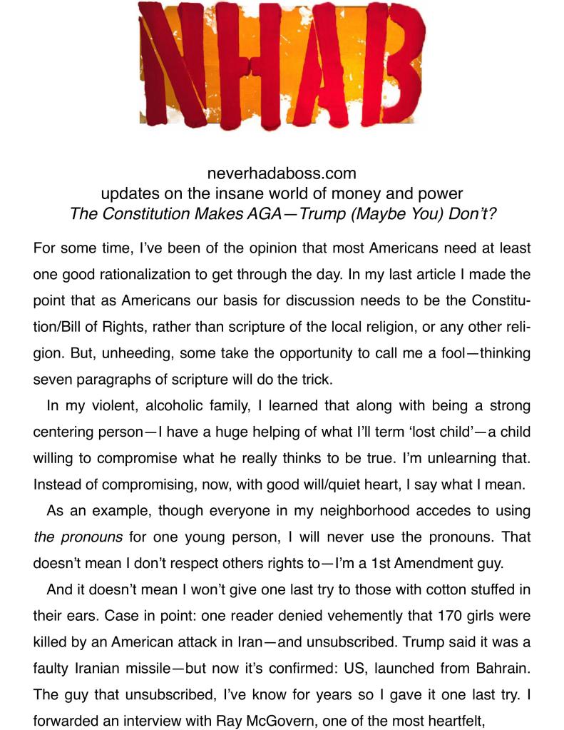 My opinion on your opinion does not matter as I believe you are free to write what you want and would never want that freedom denied. As I’ve stated, I often grow weary of the constant complaining but that’s your right as well.