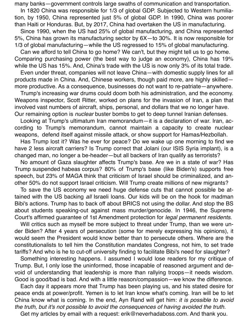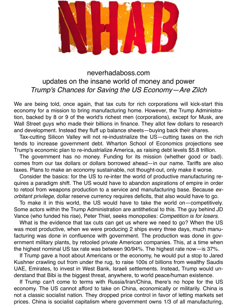 “Let’s put it this way, DOGE is cutting monies that will reach “the streets”. Any time you cut the flow of monies to a Ponzi scheme, any Ponzi scheme, the gig is up. Erik speaks of the economy, the Ponzi exists in the financial system as a whole. “Mathematically untenable” is what I call it…!”
