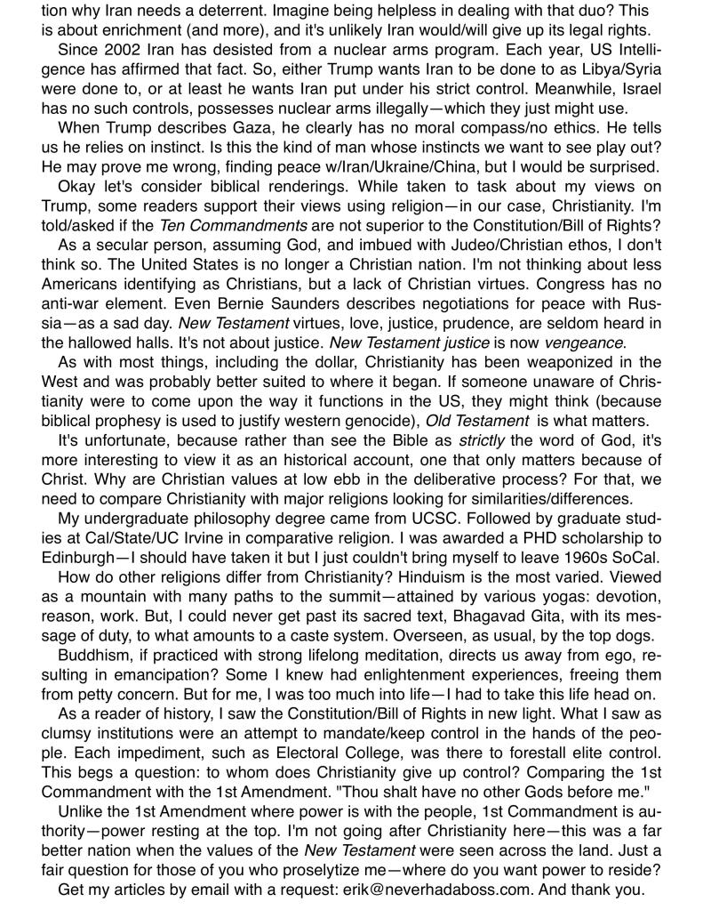 “Thou shall have no other gods before me” has taken on a new meaning for me and that is don’t worship/admire/ adore leaders and media people or anyone you obsess over and feel you must agree with. Make yourself god and think for yourself.