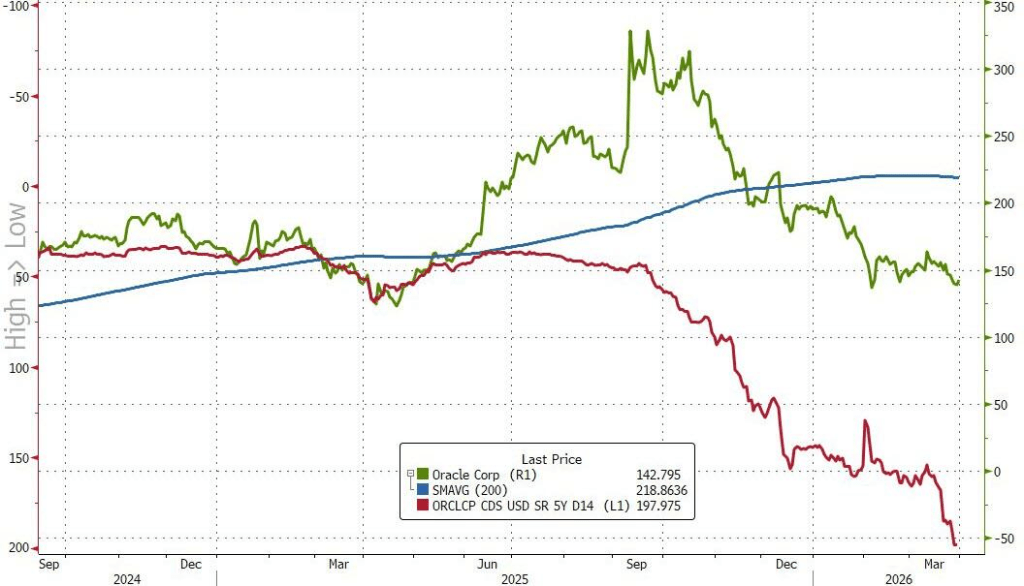 Two months ago, when ORCL announced it would raise $50 billion in a combination of stock and bonds to ease market fears about its soaring funding costs and lack of actual revenues and “to build additional capacity to meet the contracted demand from the company’s largest cloud customers, including Advanced Micro Devices, Meta Platforms, Nvidia, OpenAI, TikTok and xAI” we said that this latest example of financial engineering, which perhaps most importantly was meant to push its soaring Credit Default Swap lower, was doomed to fail.