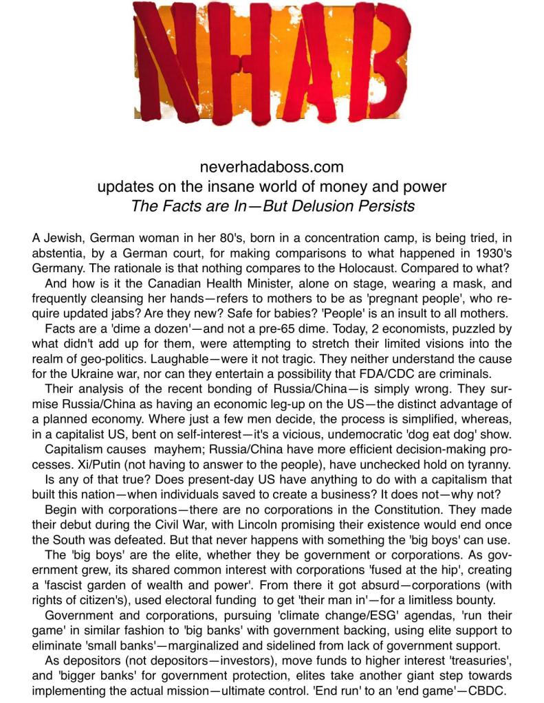 But why? Why so much division? It is by design in case you have not noticed. There is a small “elite” group that want us all to hate and fight with each other while they snap the financial trap shut. If they can divide us and distract us (and censor any sane voices out there), THEY can rule the world while you eat bugs, own nothing and somehow be happy? This is good versus evil, God versus satan or whatever description you like. But make no mistake, what is currently happening and about to happen in an all engulfing fashion, is by design. I began writing in 2007 and even back then said that policy decisions at the time were too stupid to be mistakes. I ask you this, do you really believe the asinine policies put in place have been simple “mistakes”?