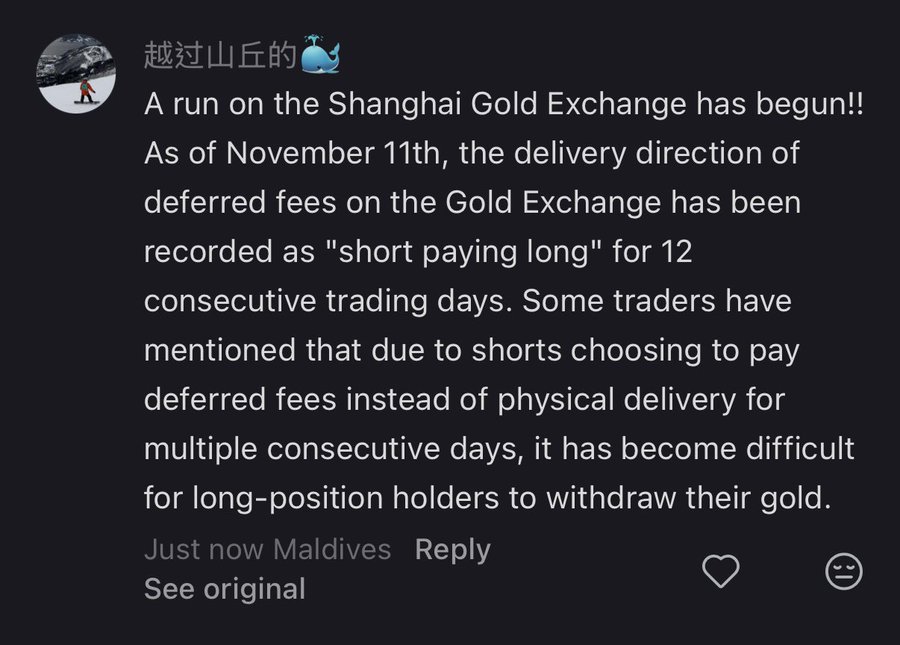 Apparently the Shanghai Gold Exchange (SGE) is seeing the #Gold shorts choosing to pay deferral fees instead of delivery physical #Gold.