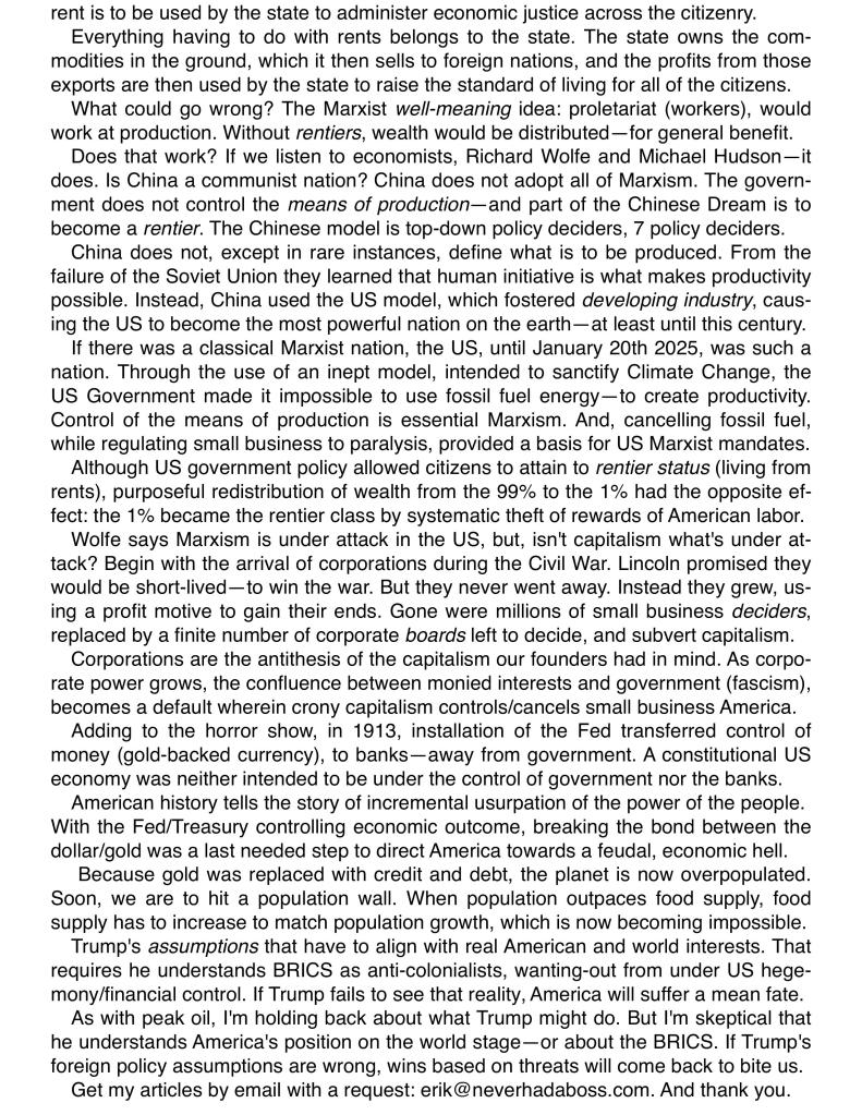 “I keep urging you to listen to or read what Vladimir Putin says. His words are not those of a madman, the words below are scary because they are true. Do you understand the implications?”